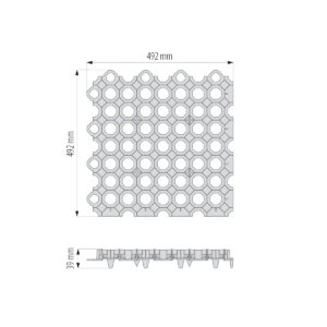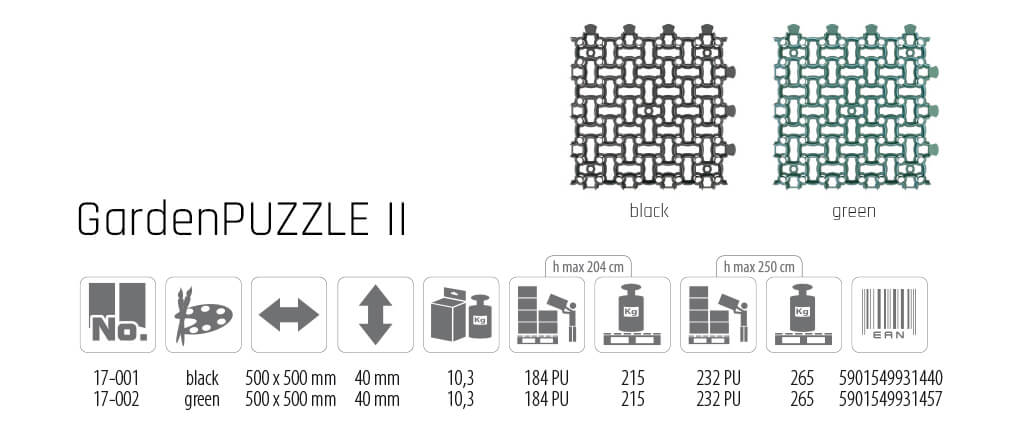 Wird als oberste Schicht als Alternative zu Pflastersteinen, Beton oder Asphalt. Hergestellt aus 100% recyceltem Kunststoff. Design Gitter unterscheidet sich deutlich im Aussehen von Ihrer Vorgängerin GardenPUZZLE I. Dank GardenPUZZLE II bekommen wir noch mehr interessante visuelle Wirkung, als es der Fall mit GardenPUZZLE I. Gitter aus wir tun die grünen Parkplätze, Straßen oder Bürgersteige. Effektiv stabilisiert den Boden und verhindert die Bildung von Spurrillen. Fließt das Wasser und die Luft in den unteren Schichten des Substrats. Kühlergrill leicht und einfach in der Verlegung nach dem Prinzip der Rätsel, dabei eine sehr hohe Tragkraft, bis zu 16 T / m2. Wir füllen seine kleinen Steinen oder dem Boden, auf den Rasen säen.